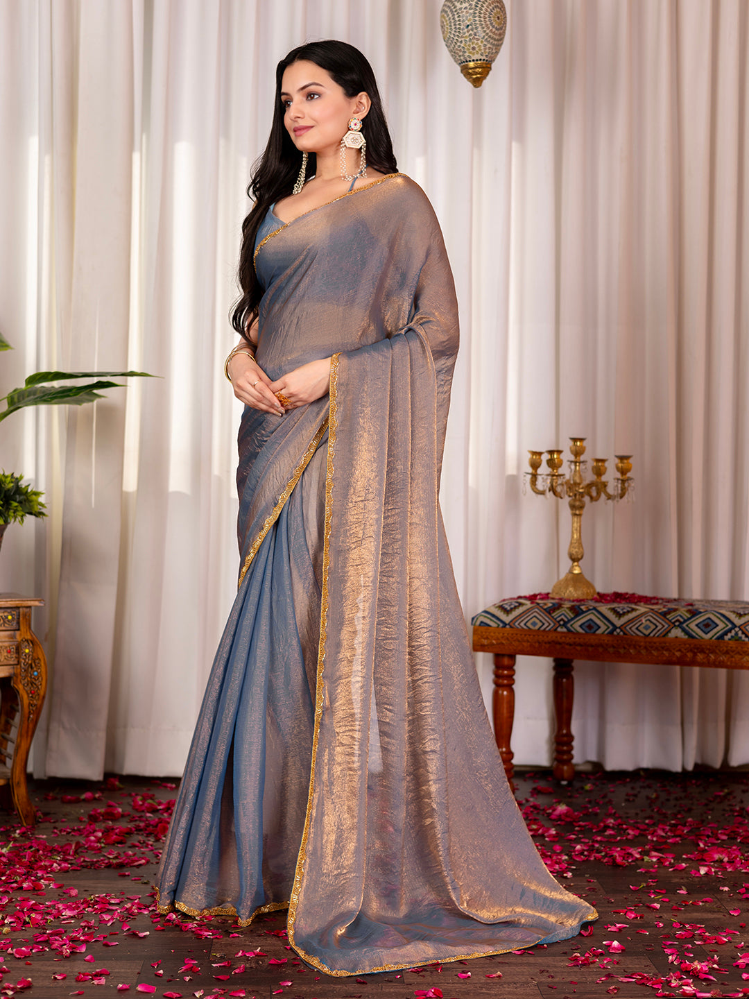 Pure two tone Fendi Chiffon Lace Embroidery Saree